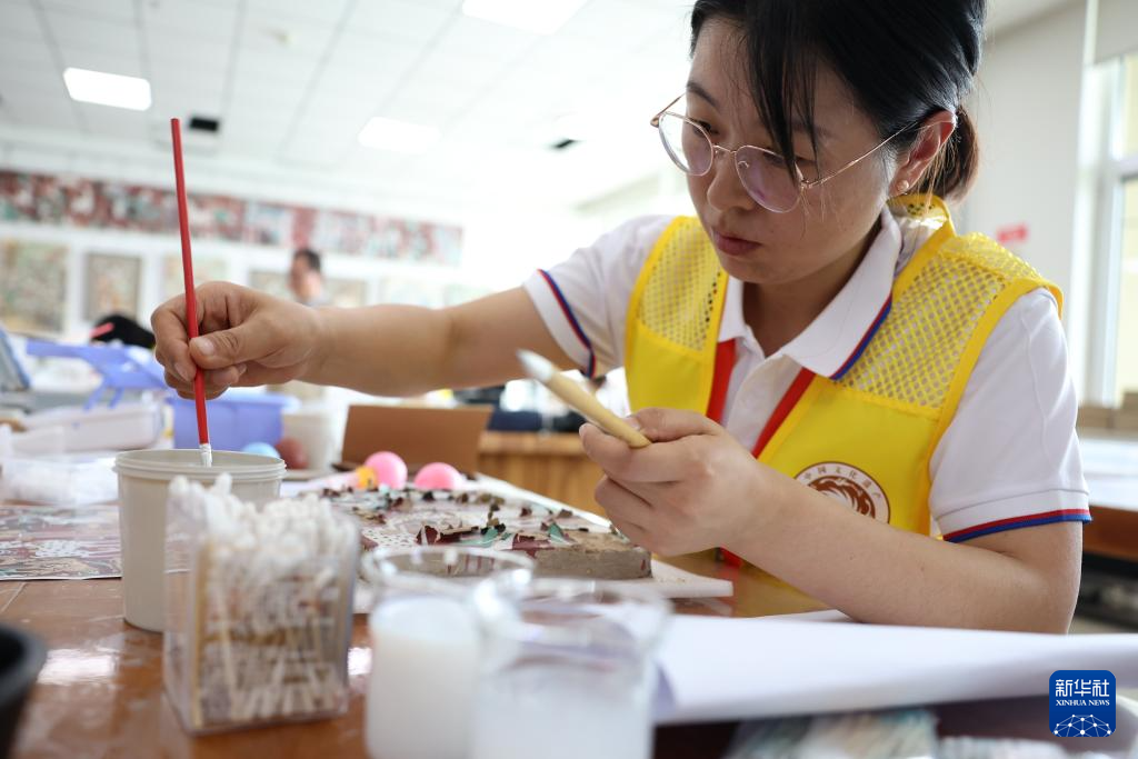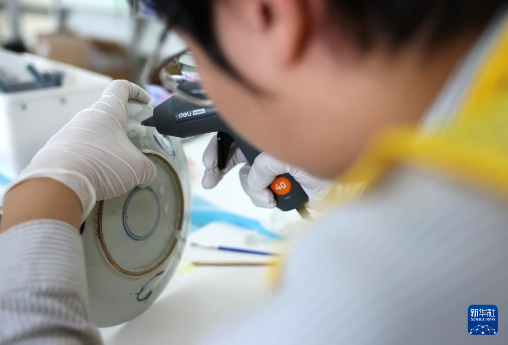 5月22日,來自寧夏回族自治區博物館的參賽選手李琦在陶瓷文物修復比賽中。
