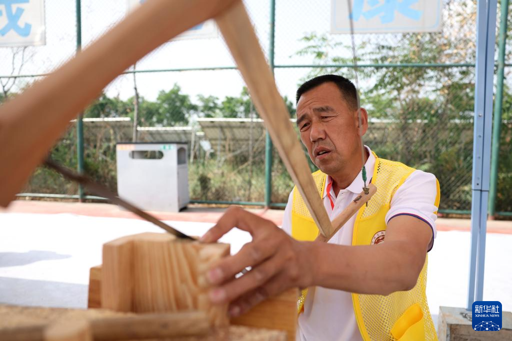 5月22日,來自甘肅省涇川縣武科古建工程部的參賽選手張建軍在木作文物修復比賽中。