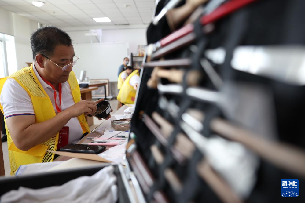 5月22日,來自新疆維吾爾自治區博物館的參賽選手石亮在金屬文物修復比賽中。