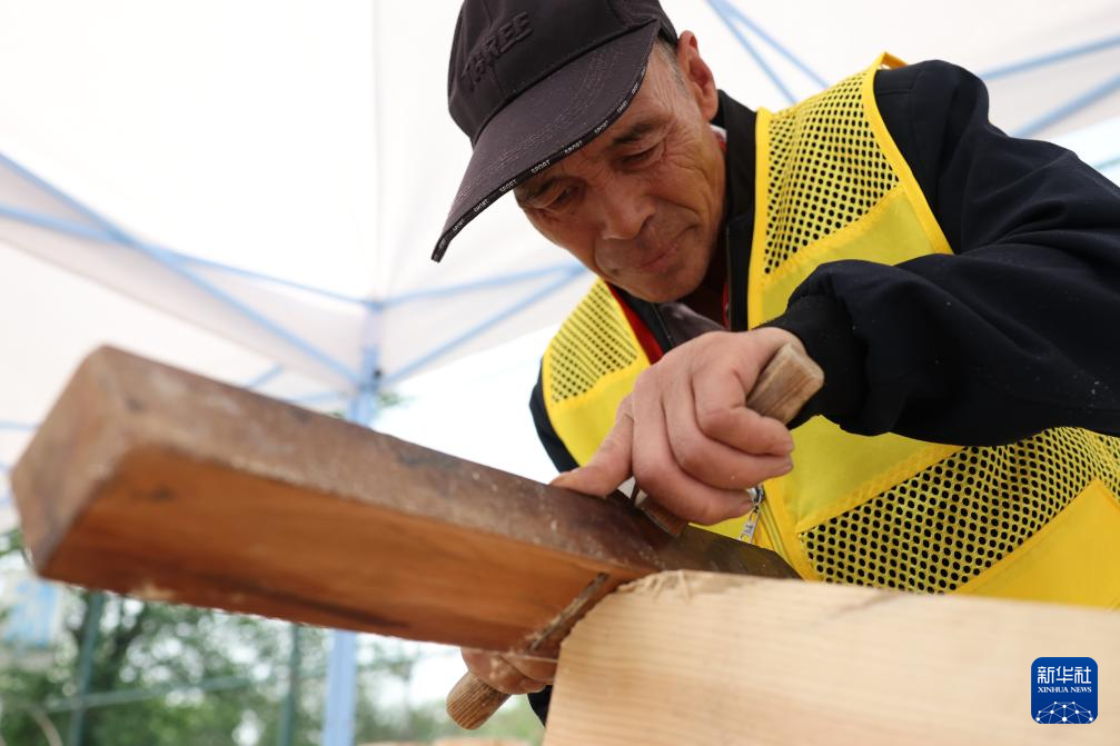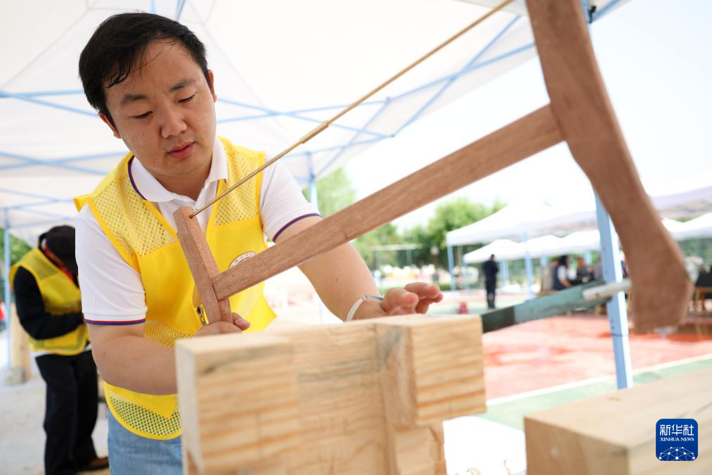 5月22日,來自甘肅昊廷古建工程有限公司的參賽選手楊永倉在木作文物修復比賽中。