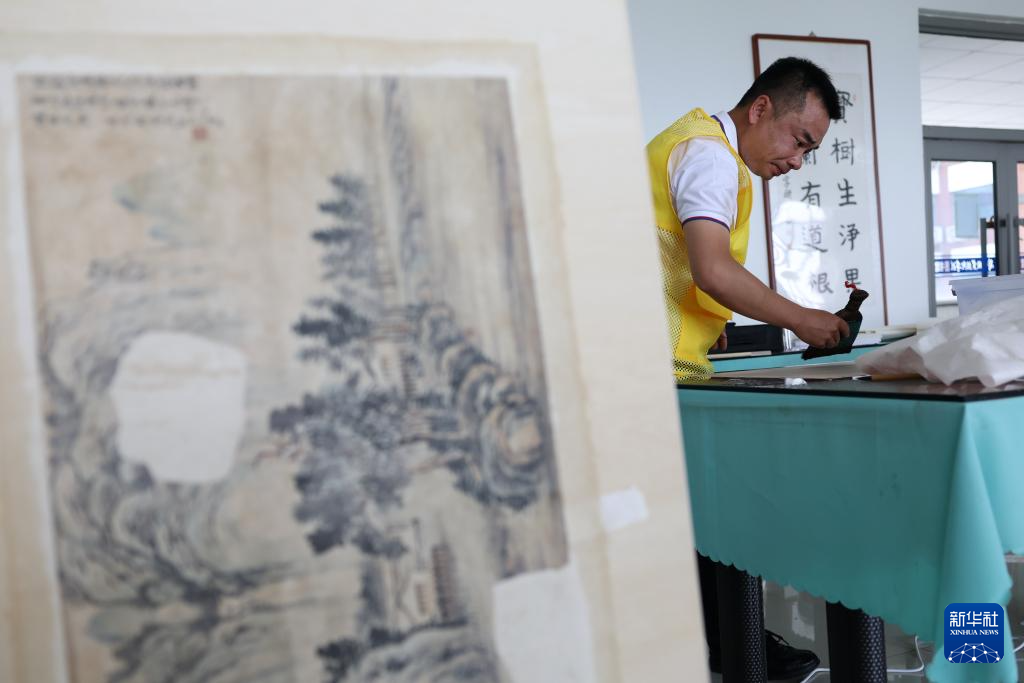 5月22日,來自張掖大佛寺文物研究所的參賽選手安博在紙張書畫文物修復比賽中。