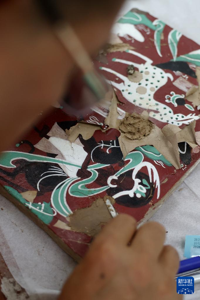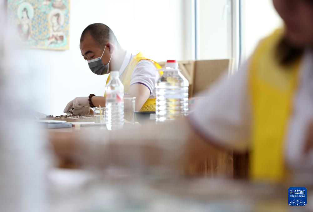 5月22日,來自麥積山石窟藝術研究所的參賽選手李瑞祥在壁畫文物修復比賽中。
