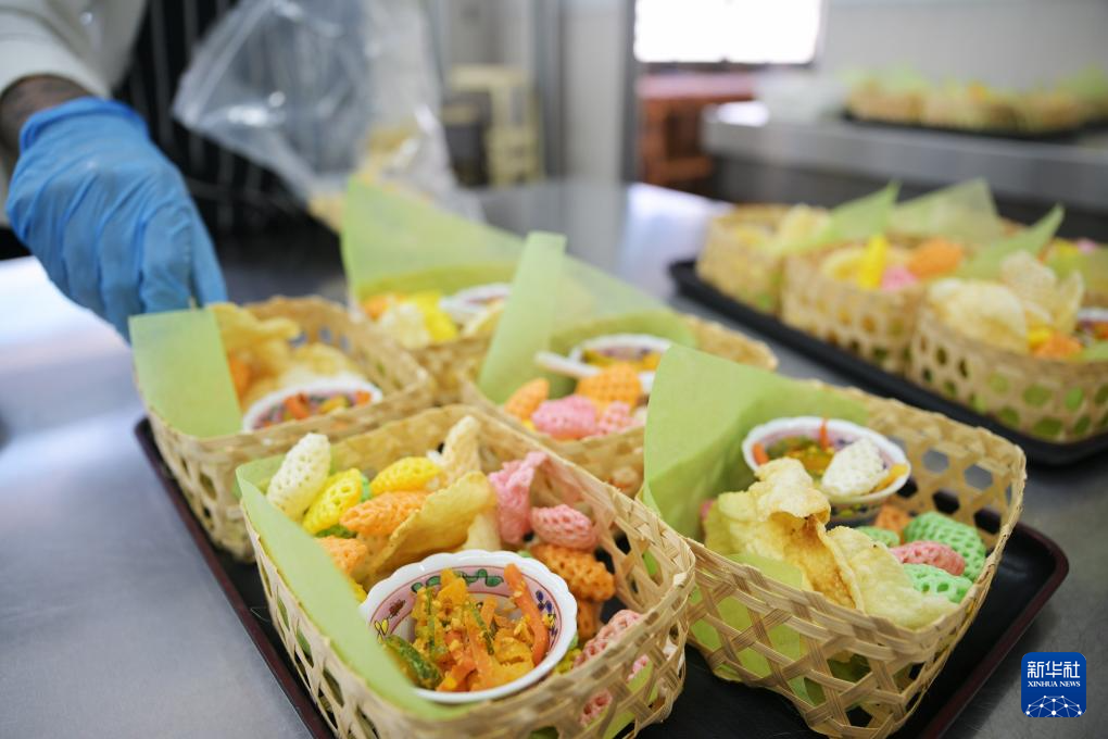 這是5月10日在新加坡舉行的新加坡文化遺產節活動上拍攝的傳統長桌宴中的娘惹酸菜與炸餅。