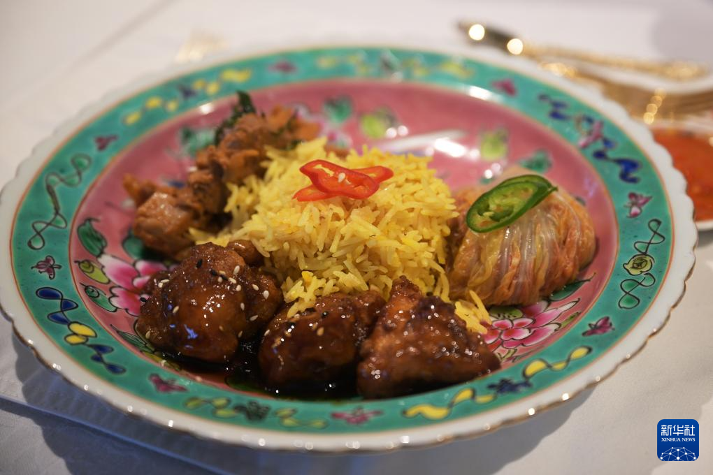 這是5月10日在新加坡舉行的新加坡文化遺產節活動上拍攝的傳統長桌宴中的融合娘惹料理。
