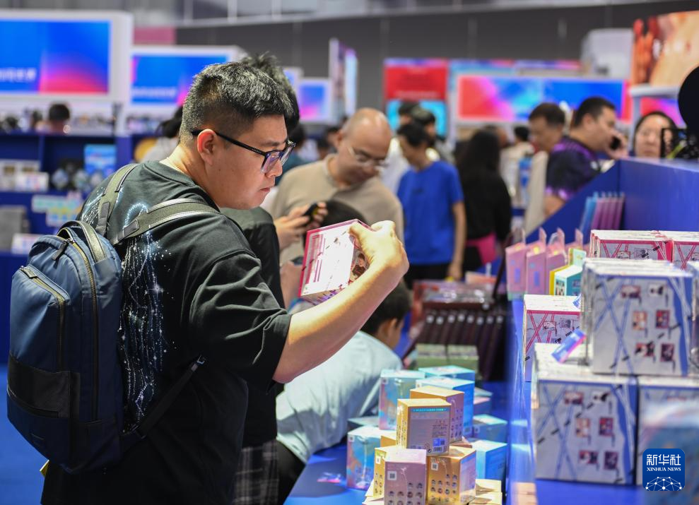 5月24日,觀眾在文博會“文創中國”展區了解一款電競主題盲盒產品。