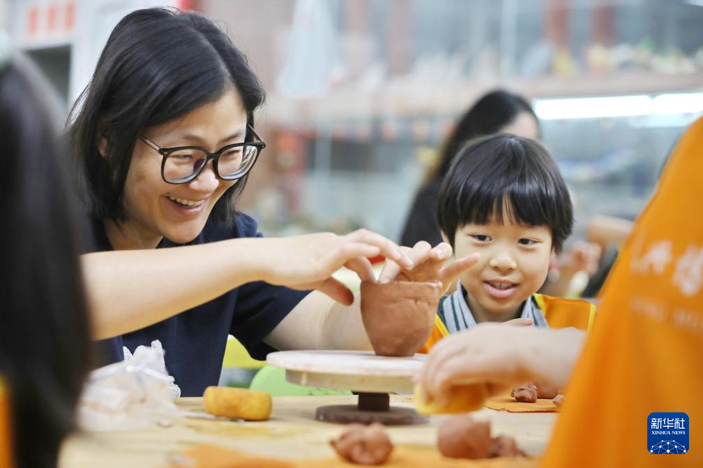 5月25日,在浙江省嘉興博物館,南湖實驗學校萬興校區一年級小學生和家長一起參加“泥塑悟非遺,親子迎端午”泥塑制作活動。