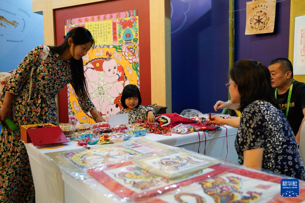 5月28日,參觀者在國際非遺品牌IP授權交易活動上了解非遺代表性項目。