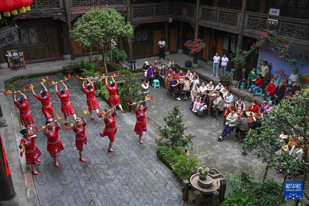 5月28日拍攝的重慶市巴南區豐盛古鎮傳統民俗舞蹈展示。