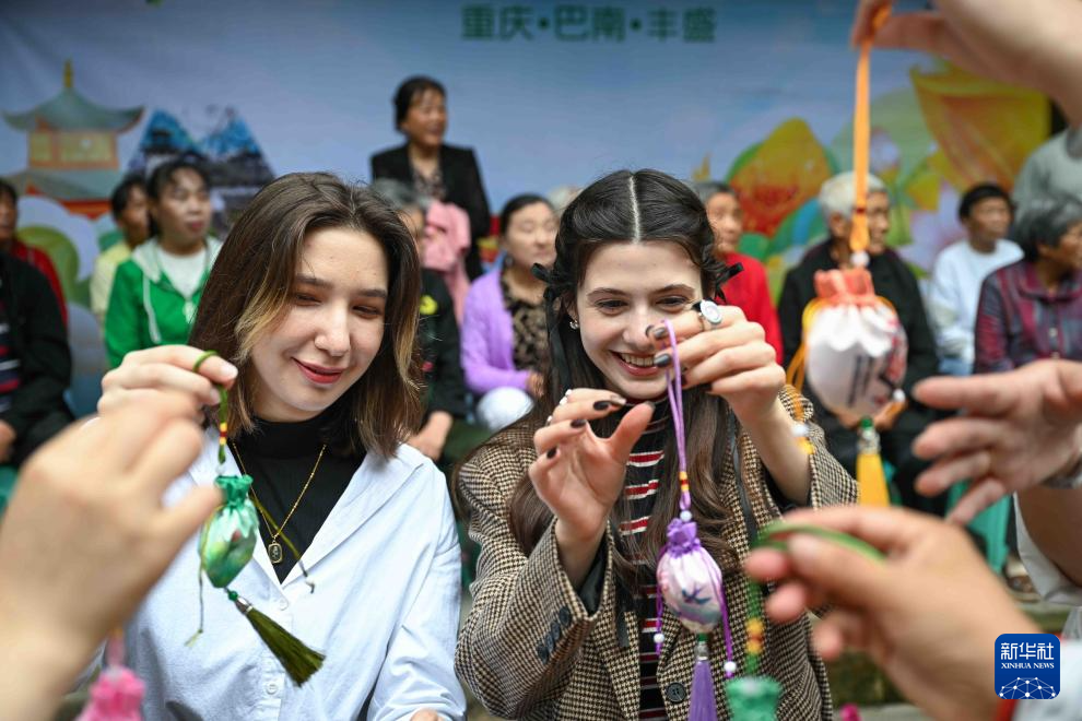當日,重慶市巴南區豐盛古鎮洋溢著濃濃的節日氛圍,“粽情端午·幸福鄰里”活動在此拉開帷幕。200余名古鎮居民與來自重慶大學的俄羅斯、哈薩克斯坦留學生歡聚一堂,打糍粑、做香囊、品粽子、劃旱龍舟,共同體驗傳統端午習俗。