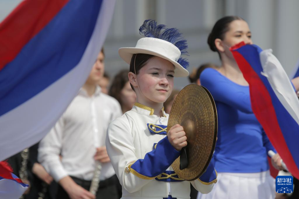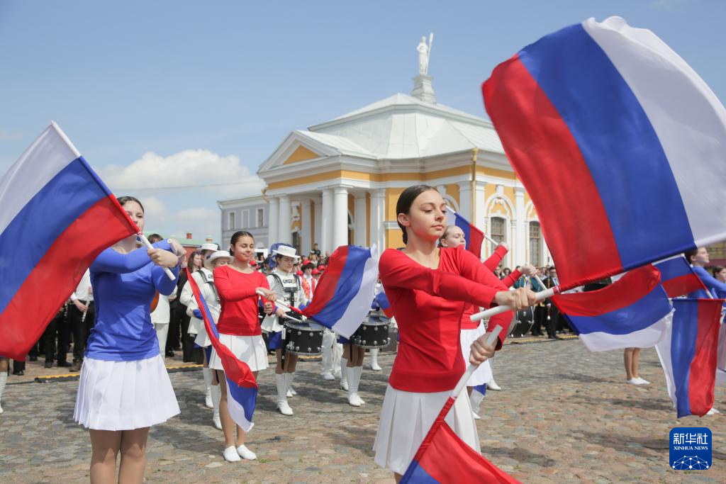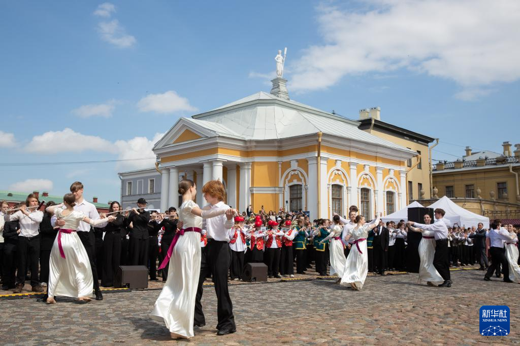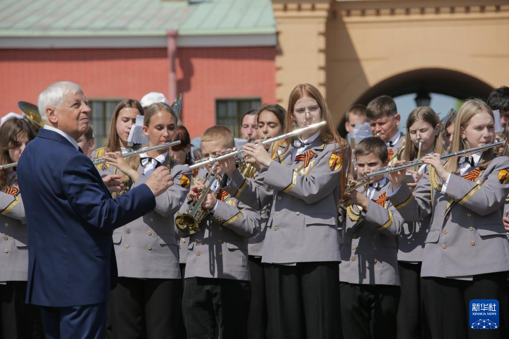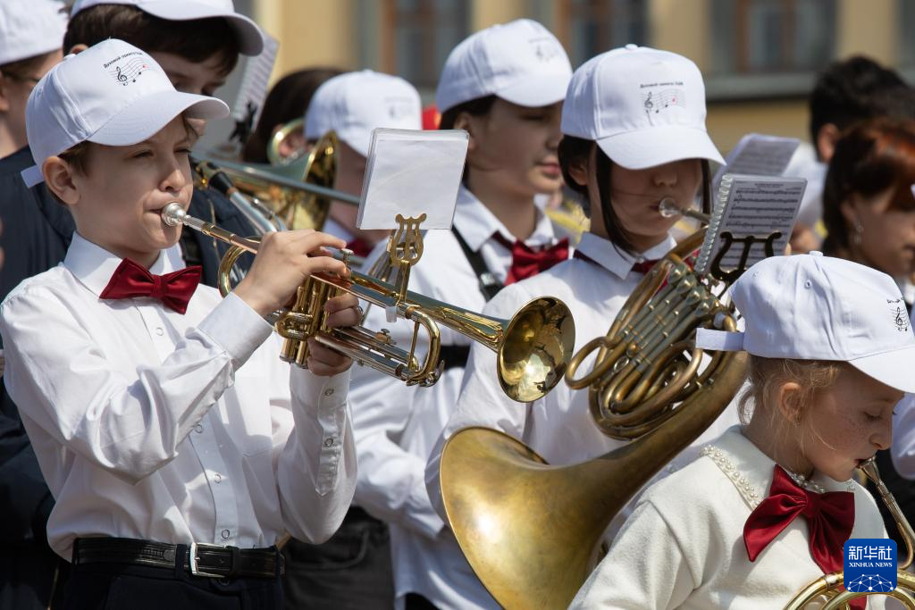 5月27日,兒童和青少年樂手等參加在俄羅斯圣彼得堡彼得保羅要塞舉行的管樂隊演出。