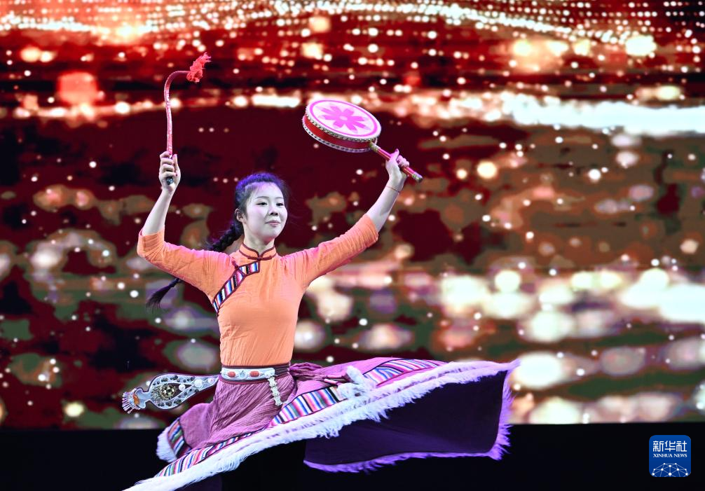 5月28日,在天津市民族文化宮,演員表演舞蹈《華夏歡歌》。