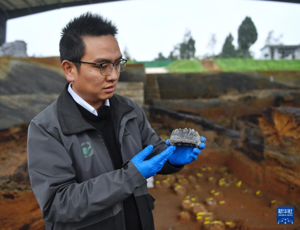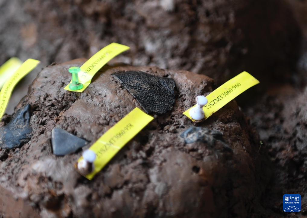 這是在四川資陽濛溪河遺址群內發掘的龜甲(2023年12月5日攝)。新華社記者 劉坤 攝