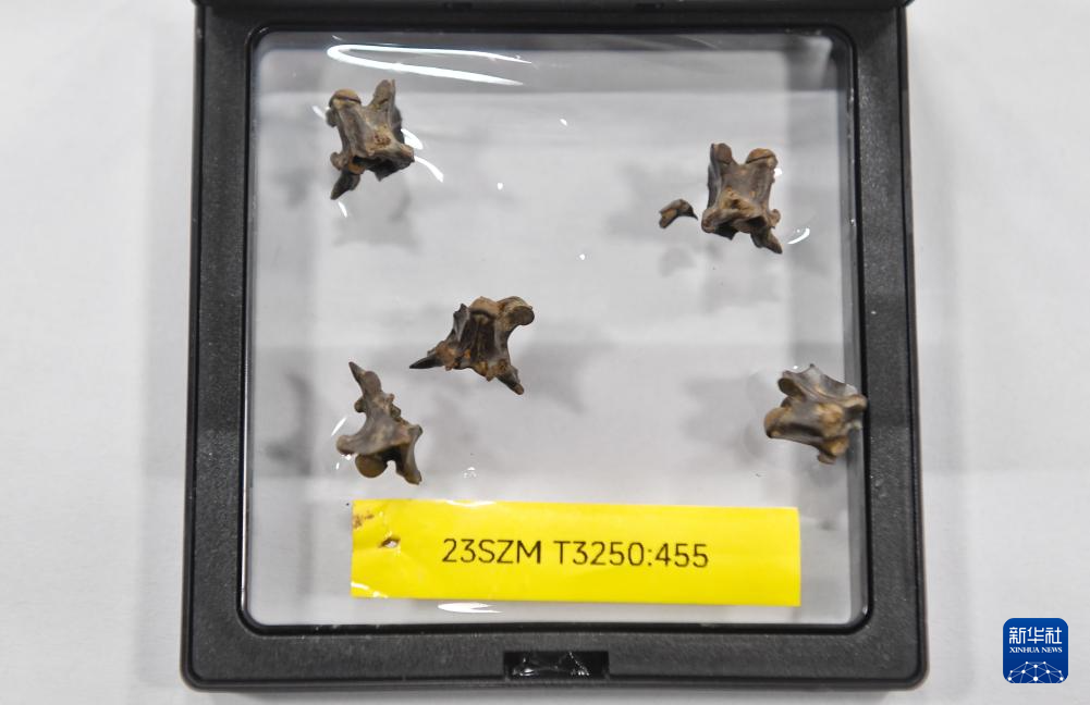 這是從四川資陽濛溪河遺址群出土的蛇骨(2023年12月5日攝)。新華社記者 劉坤 攝