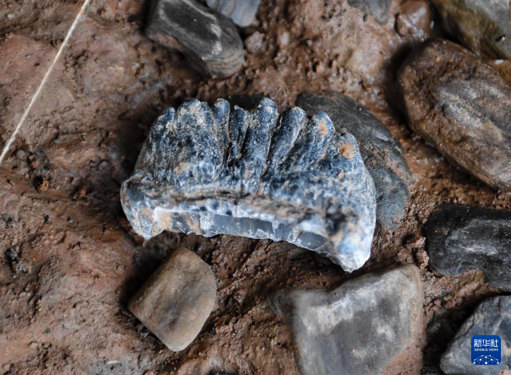 這是在四川資陽濛溪河遺址群發掘的象牙(2023年12月5日攝)。新華社記者 劉坤 攝