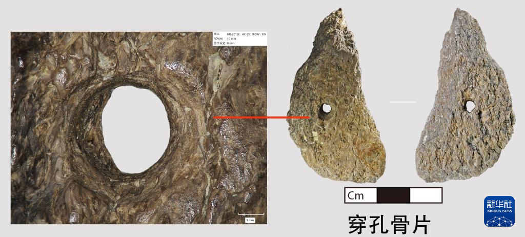 這是從四川資陽濛溪河遺址群出土的穿孔骨片(資料照片)。新華社發(四川省文物考古研究院舊石器考古研究所供圖)
