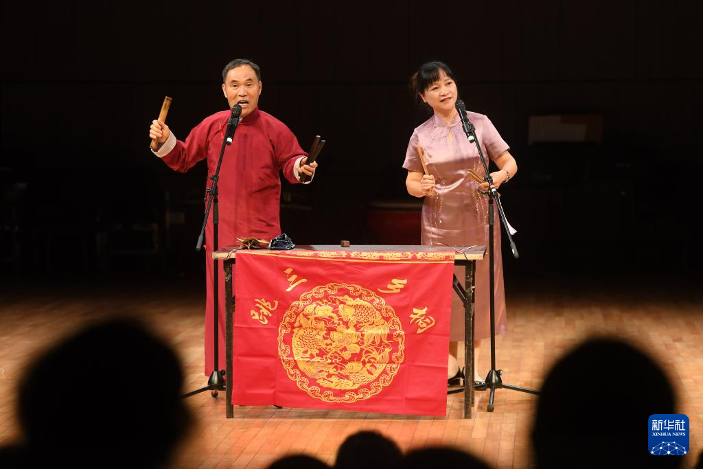5月29日,民間藝人在音樂會上表演平湖鈸子書。