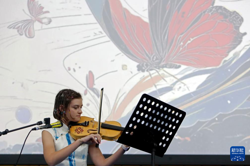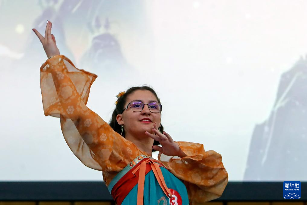 5月31日,在羅馬尼亞首都布加勒斯特,一名選手在第18屆“漢語橋”世界中學生中文比賽羅馬尼亞賽區決賽上展示才藝。新華社發(克里斯泰爾攝)