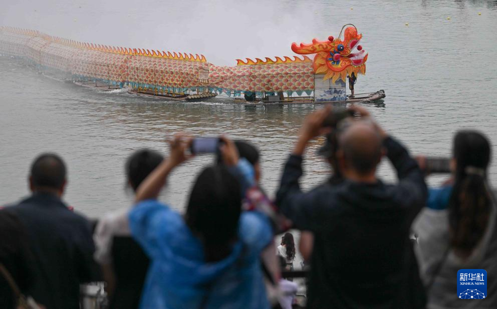 5月31日,在重慶市銅梁區安居古城,觀眾觀看“神龍攬勝”游江表演。