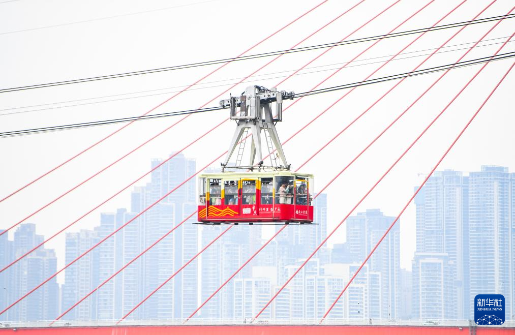 6月7日,游客乘坐纜車觀賞重慶城市景色。