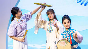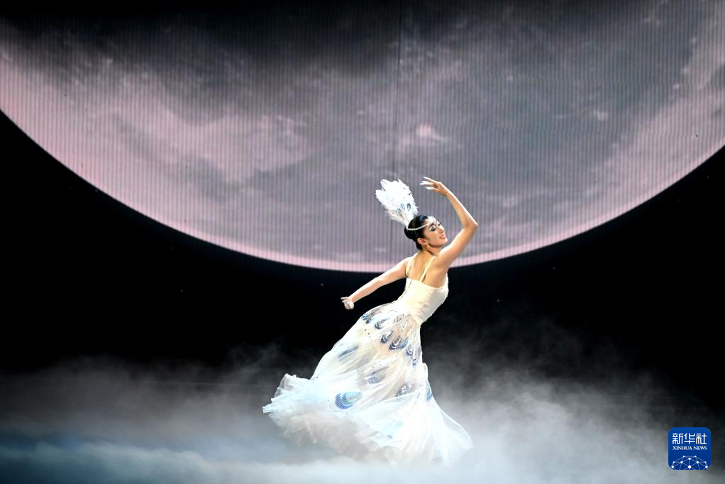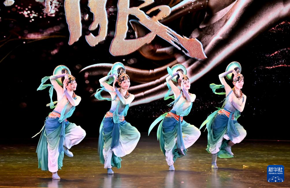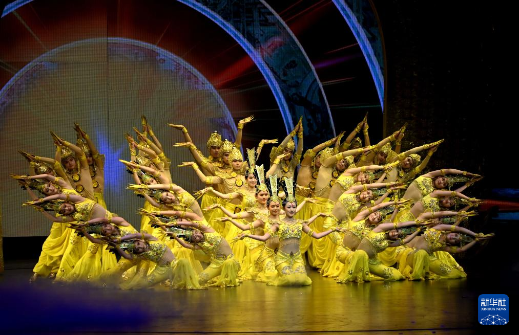 6月8日,中國殘疾人藝術團演員在甘肅敦煌大劇院表演大型情景音畫劇《千手千眼》。