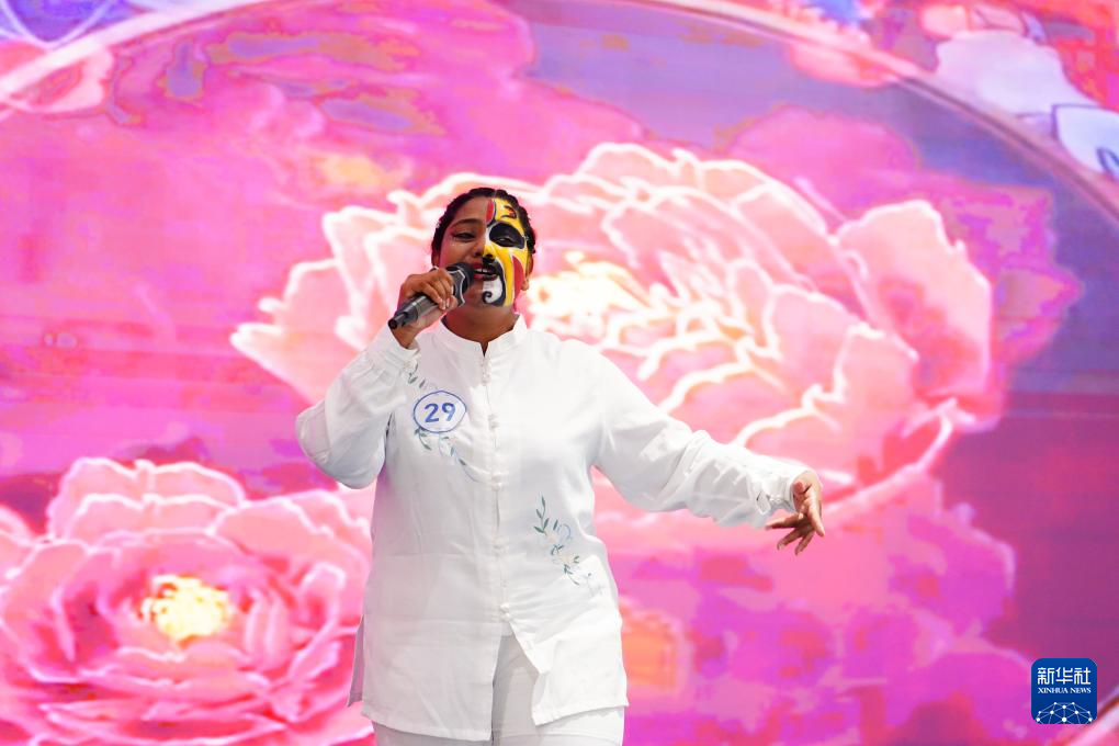 6月3日,在斯里蘭卡首都科倫坡,“漢語橋”世界大學生中文比賽斯里蘭卡賽區決賽的參賽選手展示才藝。