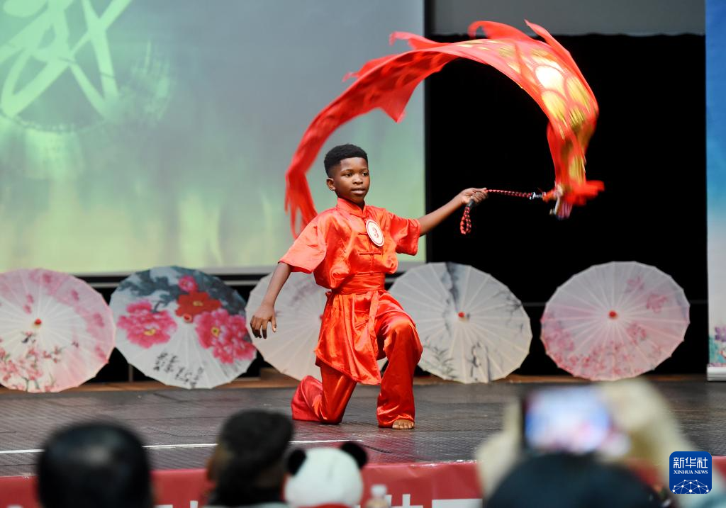 6月6日,在博茨瓦納首都哈博羅內,“漢語橋”世界小學生中文秀博茨瓦納賽區決賽的參賽選手展示才藝。