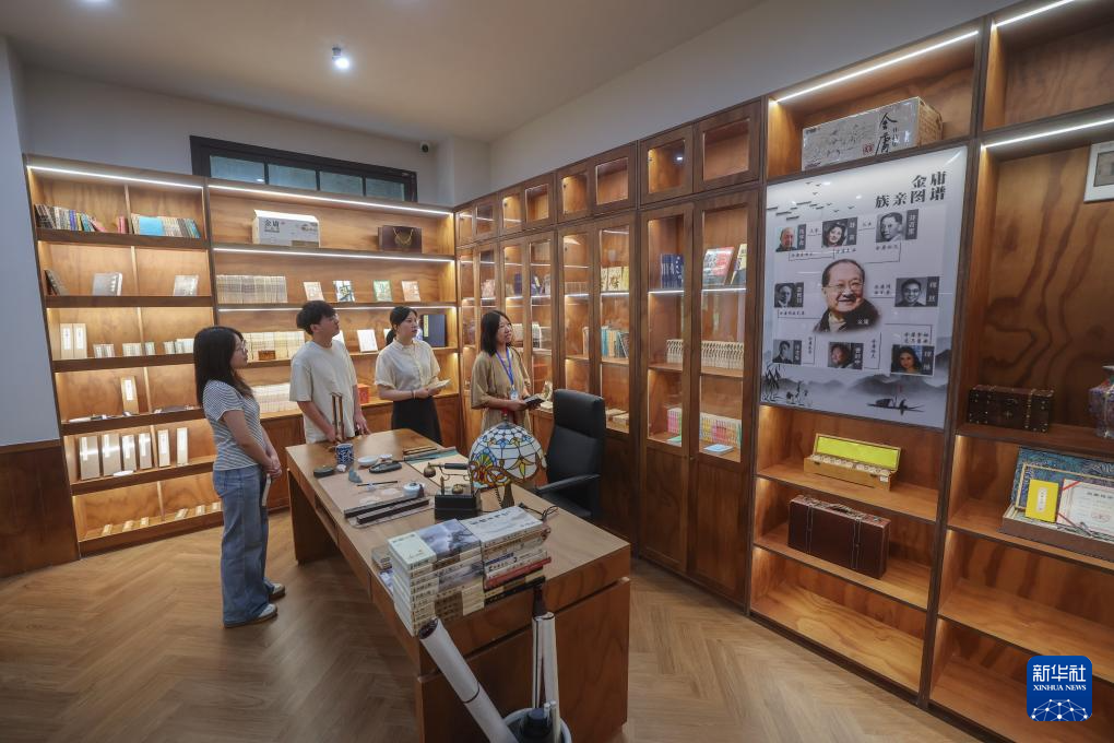 6月10日,游客在嘉興市南湖區建設街道的子城歡喜書店參觀金庸主題書房。