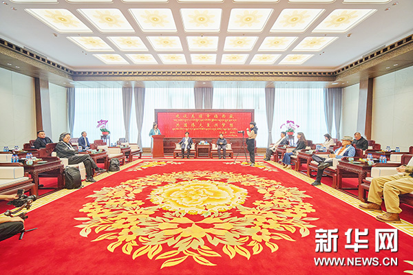 圖為西藏自治區黨委宣傳部副部長、文化和旅游廳黨組書記肖傳江向藝術家們敬獻哈達