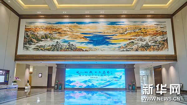 活動當天,中國高原畫派代表名家、西藏自治區美術家協會名譽主席唐天源創作的大型藝術壁畫《大美西藏》也在西藏拉薩貢嘎國際機場T1航站貴賓區進出港大廳室正式揭幕。這幅高原題材的壁畫長25米、寬6米,是目前中國高原畫派最大的作品之一。其以西藏大美山河為題材,采用中國高原畫派獨特的創作手法繪制而成,呈現了西藏高原雄渾壯美的自然風光,創作注重情感共鳴與社會責任,令受眾充分感受到西藏的文化魅力。中國高原畫派匯集了以唐天源為代表的當前潛心于西藏題材、高原題材創作的優秀藝術家們,不僅內容和形式是高原的,其雄渾博大的藝術本質更展現著精神高原的震撼和視覺沖擊力。