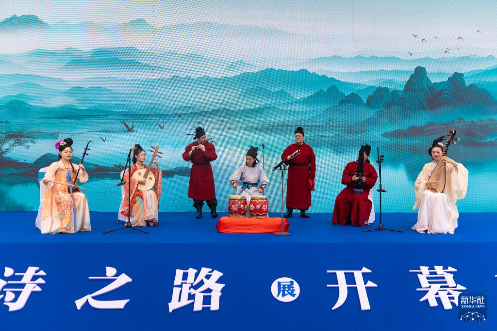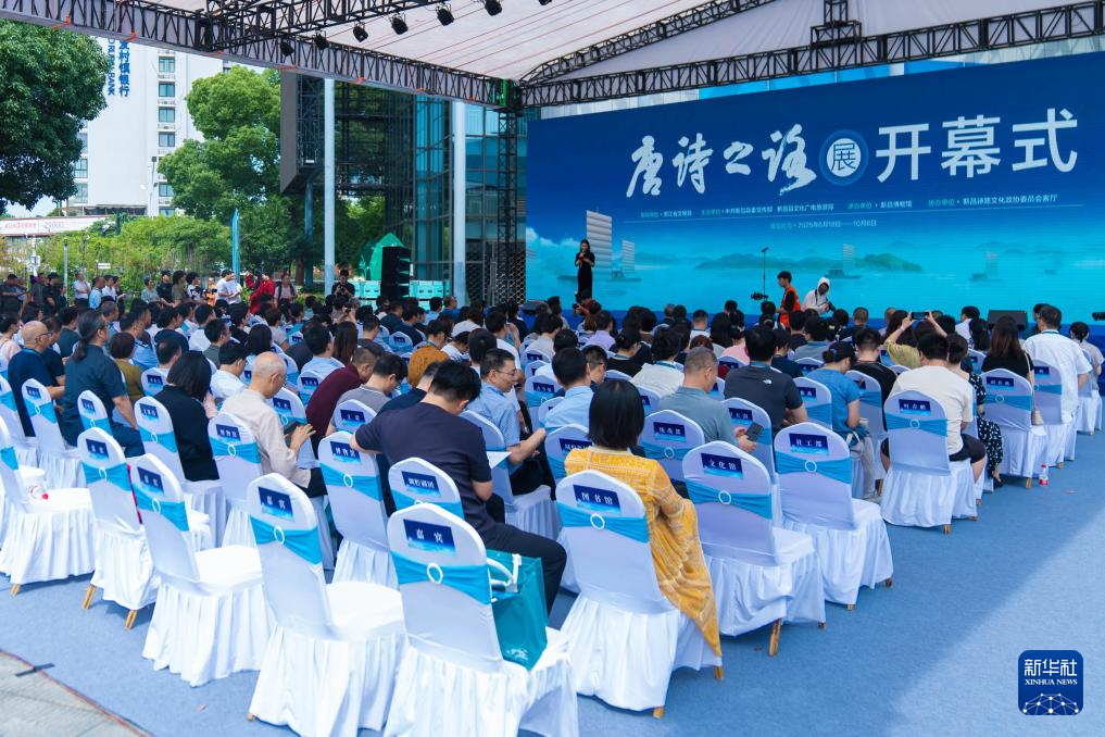 這是6月18日拍攝的浙江紹興新昌博物館的“唐詩之路”展覽開幕式現場。