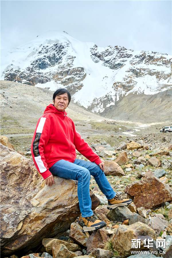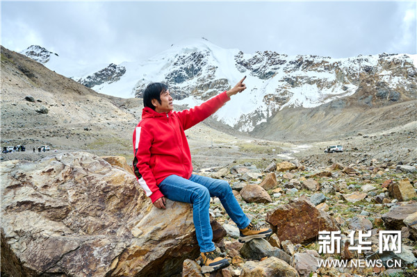 西藏中國高原畫派研究院院長、西藏自治區美術家協會名譽主席唐天源在廓瓊崗日冰川尋找創作靈感