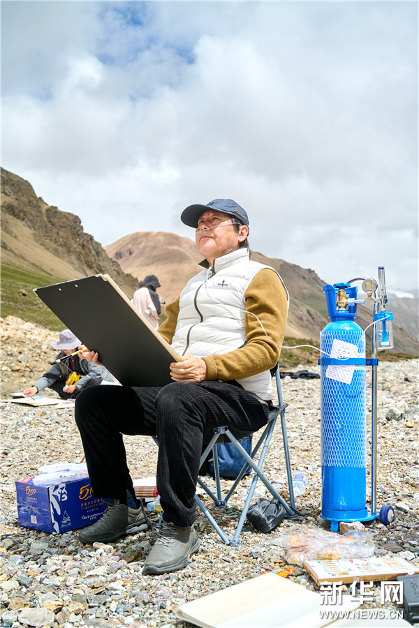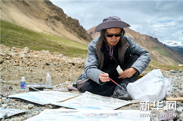 中國文藝志愿者協會副主席、中國美術家協會理事、中國國家畫院美術館原館長何加林在廓瓊崗日冰川寫生