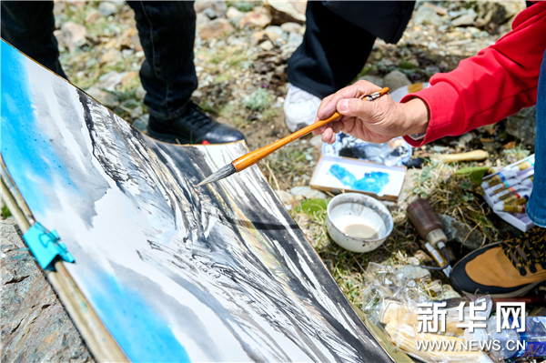 6月17日,“文化西藏 天上畫卷”高原高峰藝術家西藏行寫生活動走進廓瓊崗日冰川。唐天源、何加林、敬廷堯、丁杰、顧平、梁明、陳琪等知名藝術家現場寫生,用畫筆描繪西藏之美。