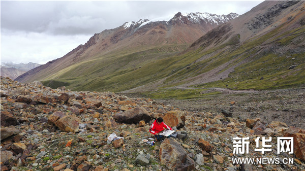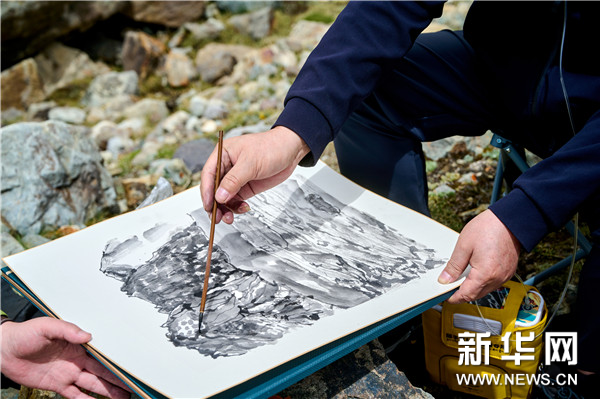 中國國家畫院山水所畫家、民盟中央美術院副院長顧平在廓瓊崗日冰川寫生