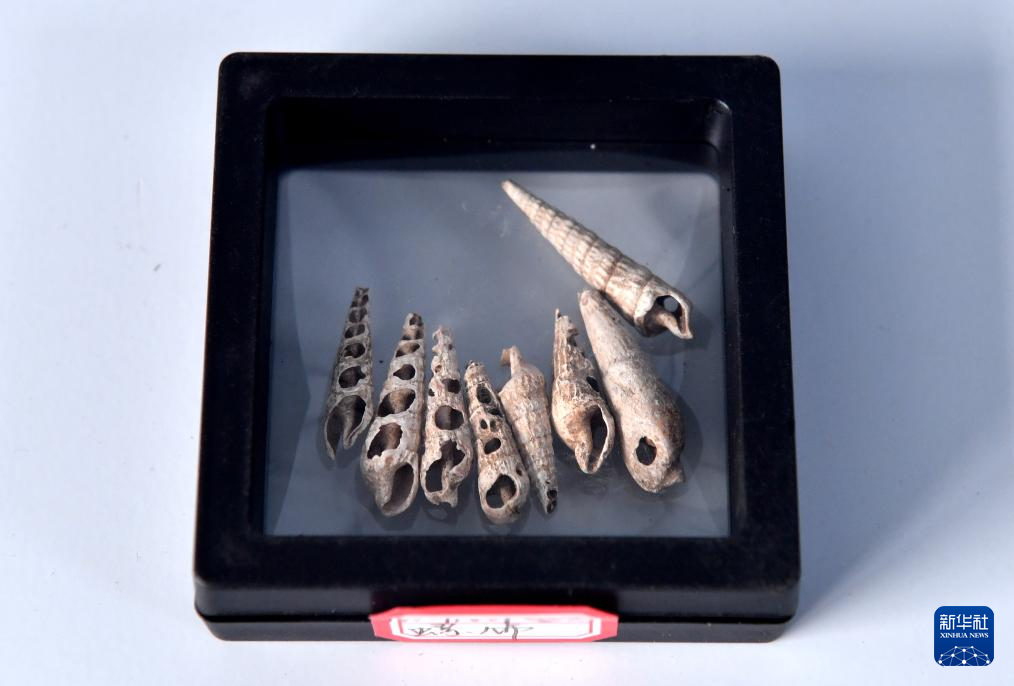 這是6月18日拍攝的宣化鄭家溝遺址出土的螺飾。