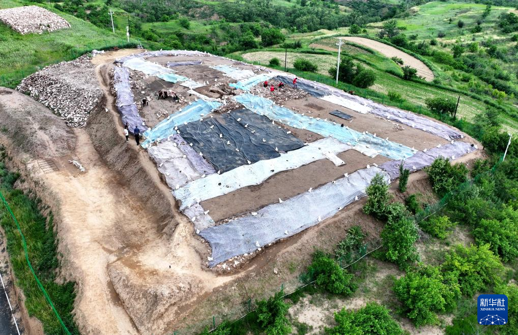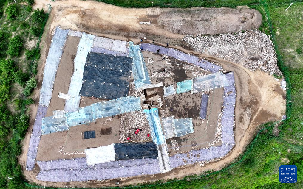 這是6月18日拍攝的宣化鄭家溝遺址一號積石冢(無人機照片)。