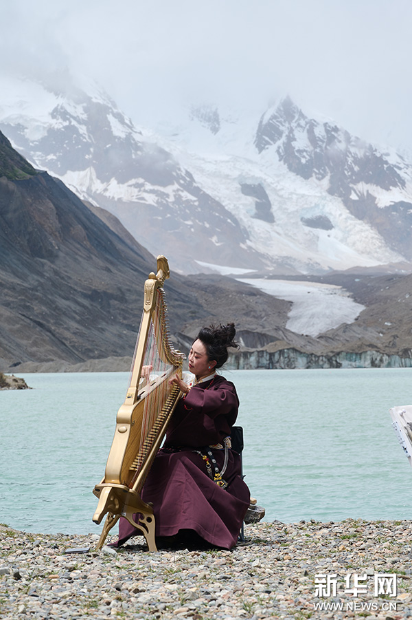 中央民族樂團著名箜篌演奏家吳琳在祥格拉冰川演奏
