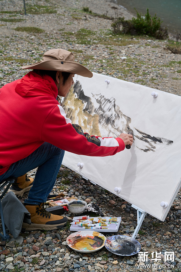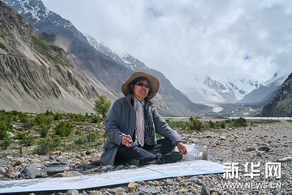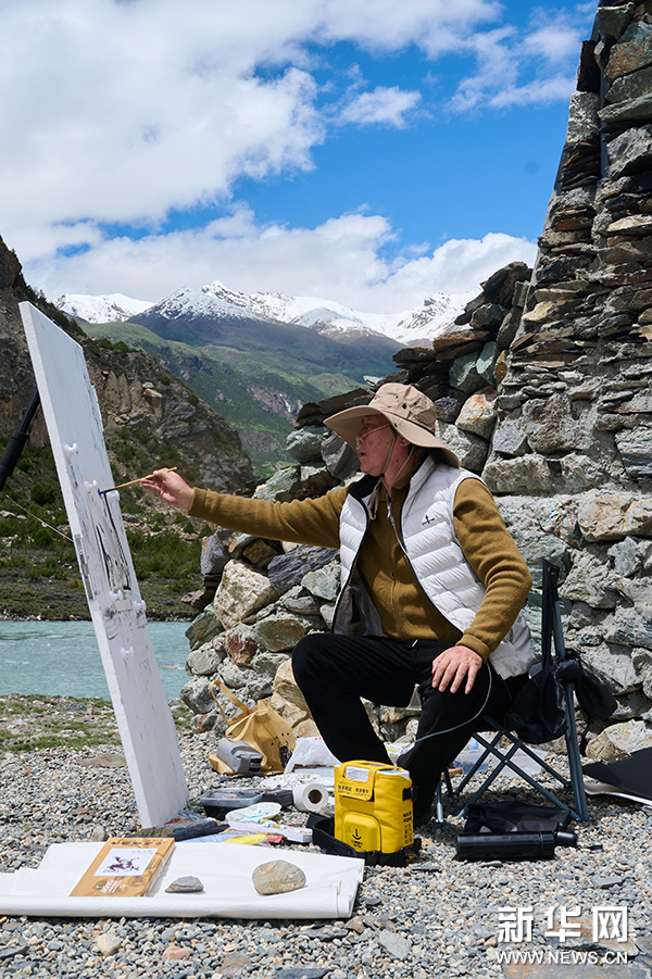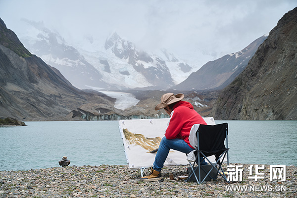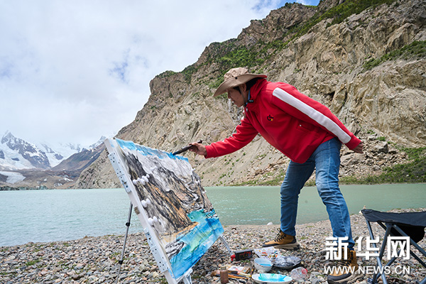 中國文藝志愿者協會副主席、中國美術家協會理事、中國國家畫院美術館原館長何加林在祥格拉冰川現場寫生