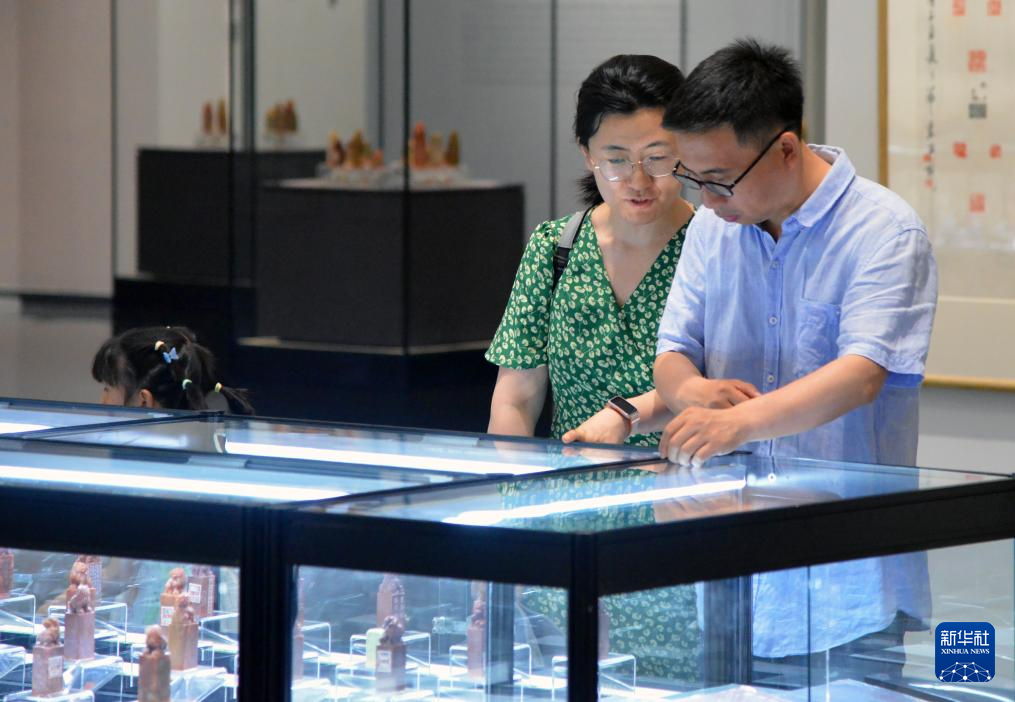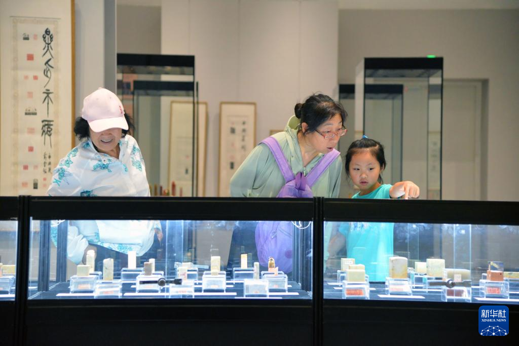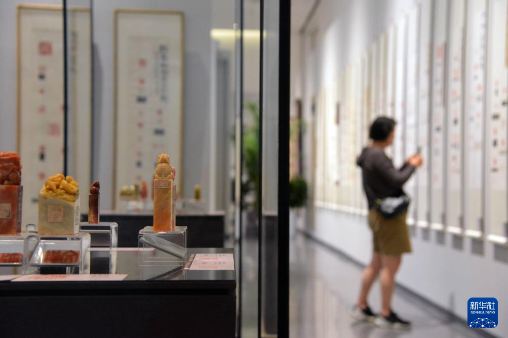 6月21日,觀眾在北京市海淀區三山五園文化藝術中心參觀薪傳國粹——“萬印樓”新藏當代國際篆刻精品展。