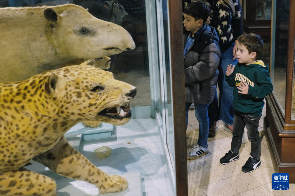 6月20日,小朋友和家長在阿根廷拉普拉塔博物館內參觀。