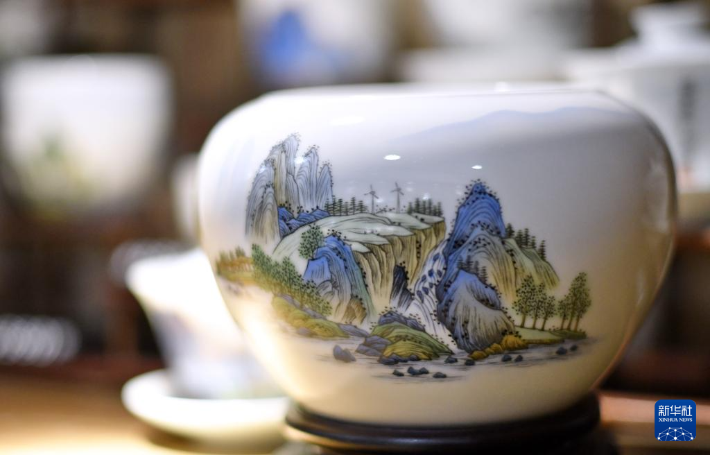 京彩瓷博物館展示的京彩瓷展品(6月18日攝)。