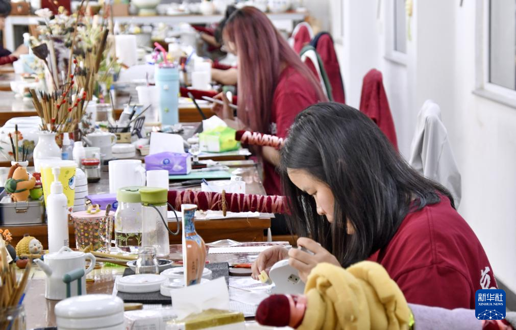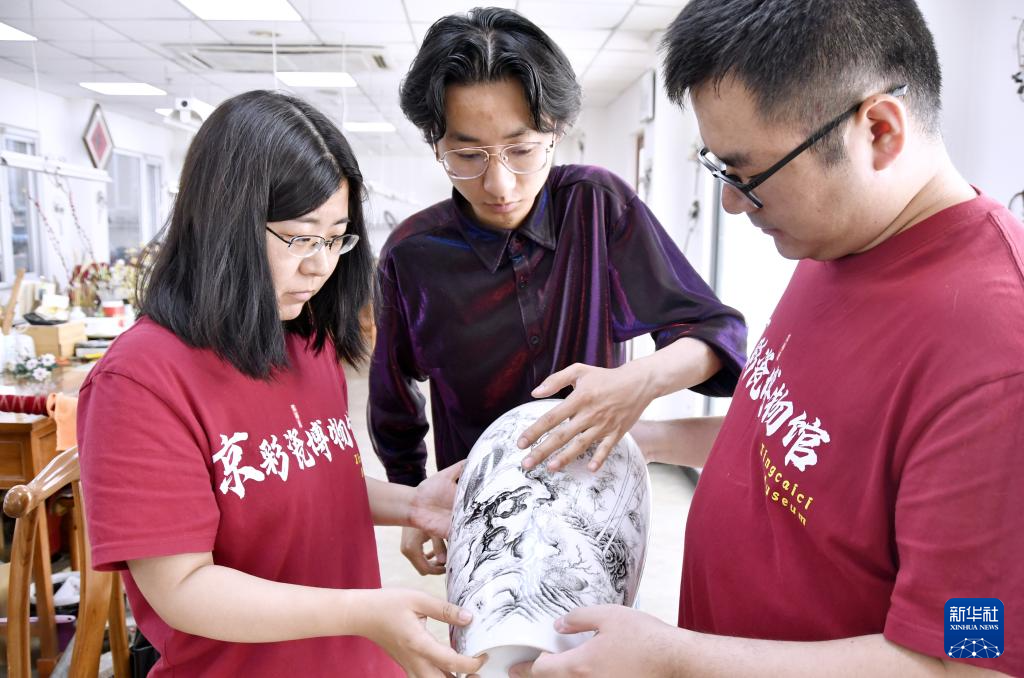 京彩瓷青年傳承人在進行創作(6月18日攝)。