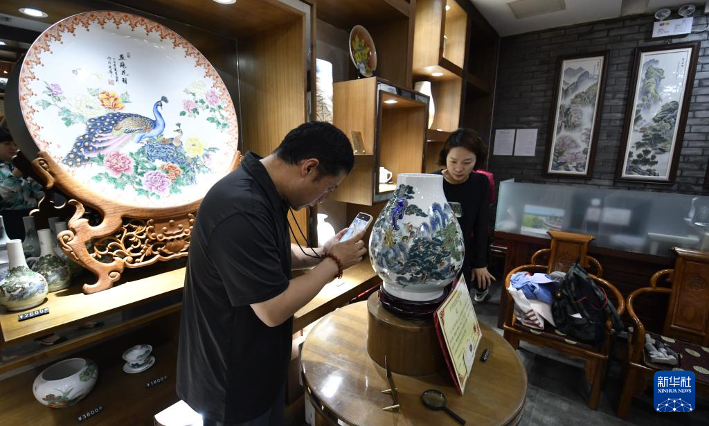 市民在京彩瓷博物館內參觀(6月18日攝)。