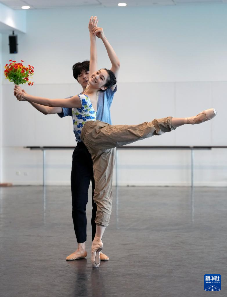 6月25日,在上海國際舞蹈中心排練廳,上芭主要演員郭文槿(前)、許靖昆在排練。