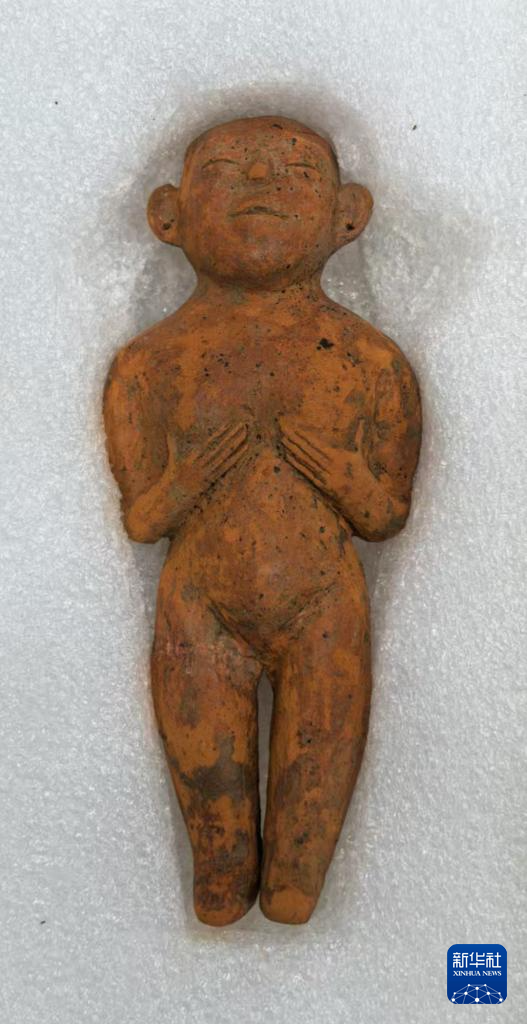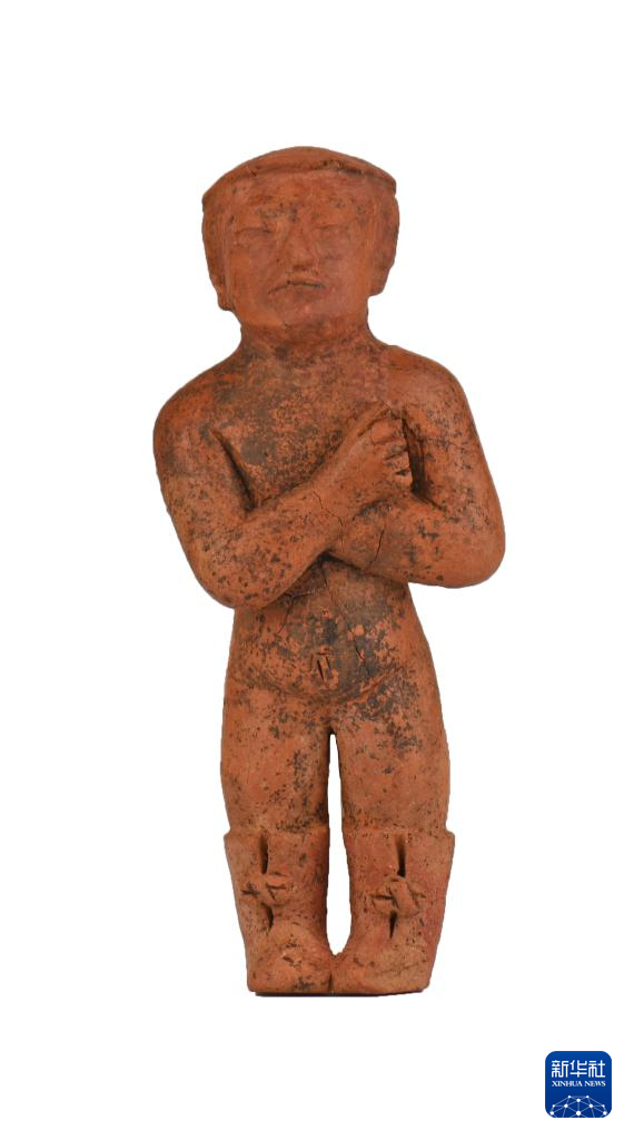 這是東山頭遺址出土的紅山文化陶塑站姿男俑(資料照片)。