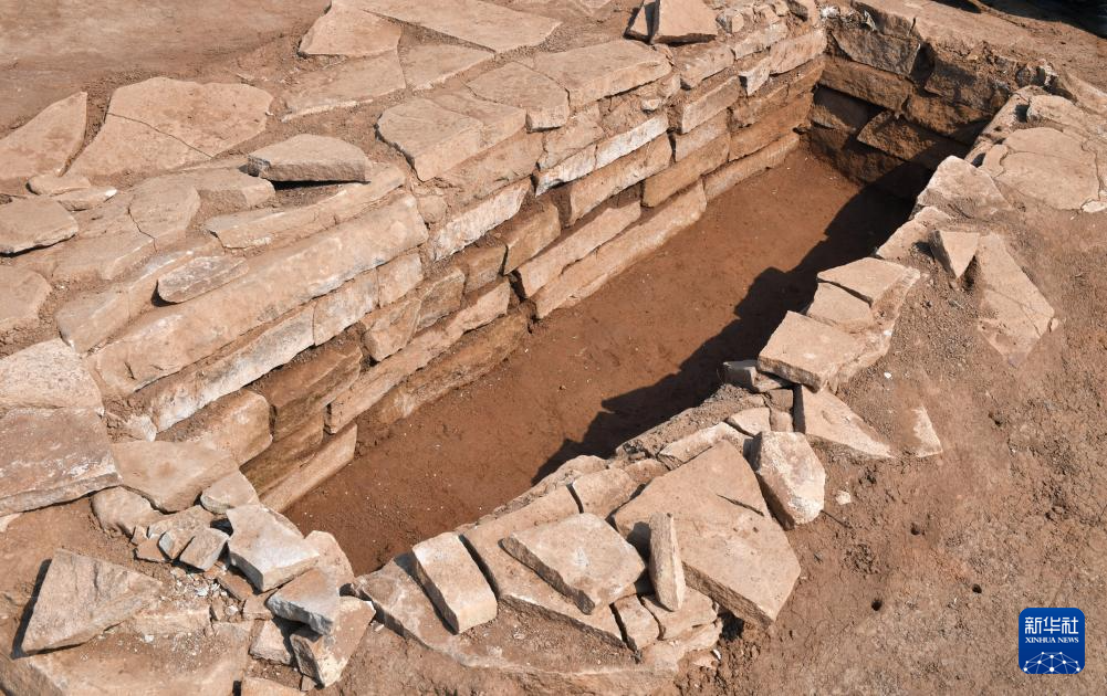 這是6月23日拍攝的東山頭遺址一處石墓考古發掘現場。