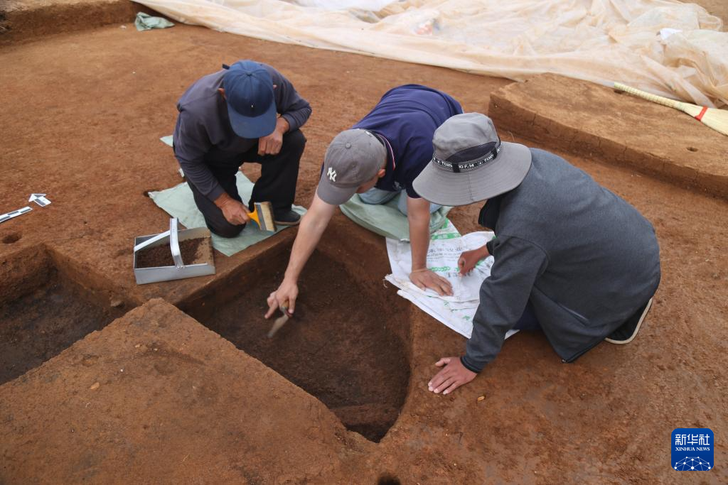 這是6月23日拍攝的東山頭遺址一處房址考古發掘現場。