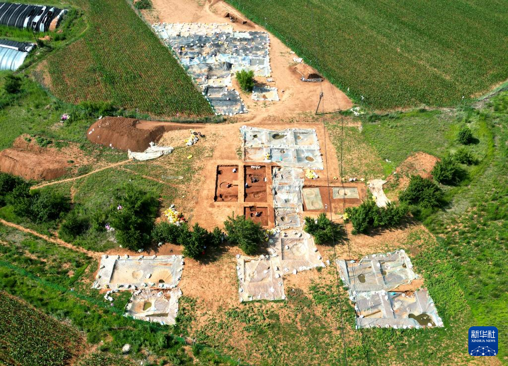 這是6月24日拍攝的東山頭遺址考古發掘現場(無人機照片)。