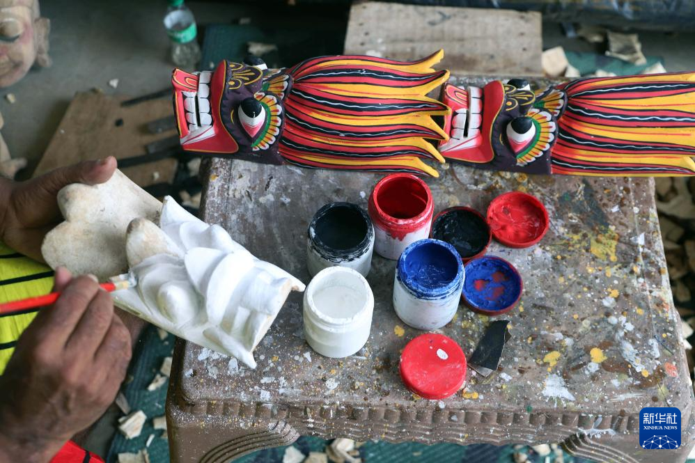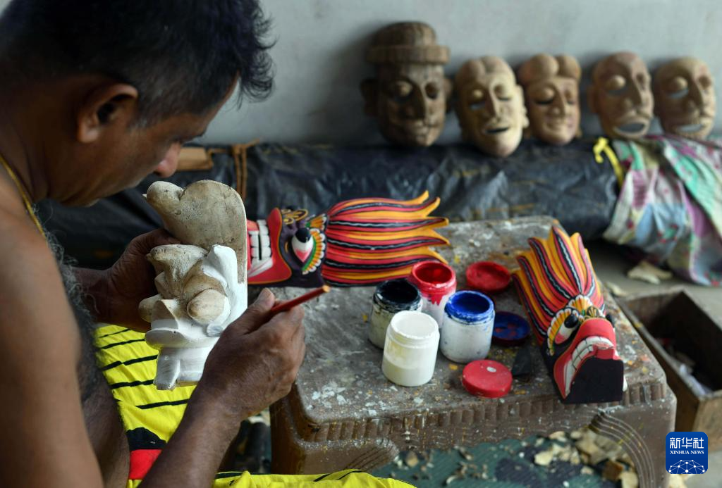 6月25日,一名手工藝者在斯里蘭卡戈納波拉村制作斯里蘭卡傳統面具。
