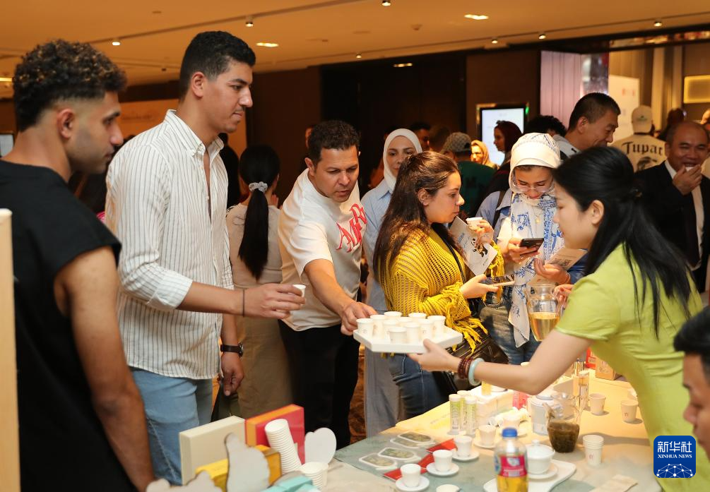 6月24日,在埃及首都開羅,人們在“清新福建”文化和旅游推介會活動現場品嘗中國茶。